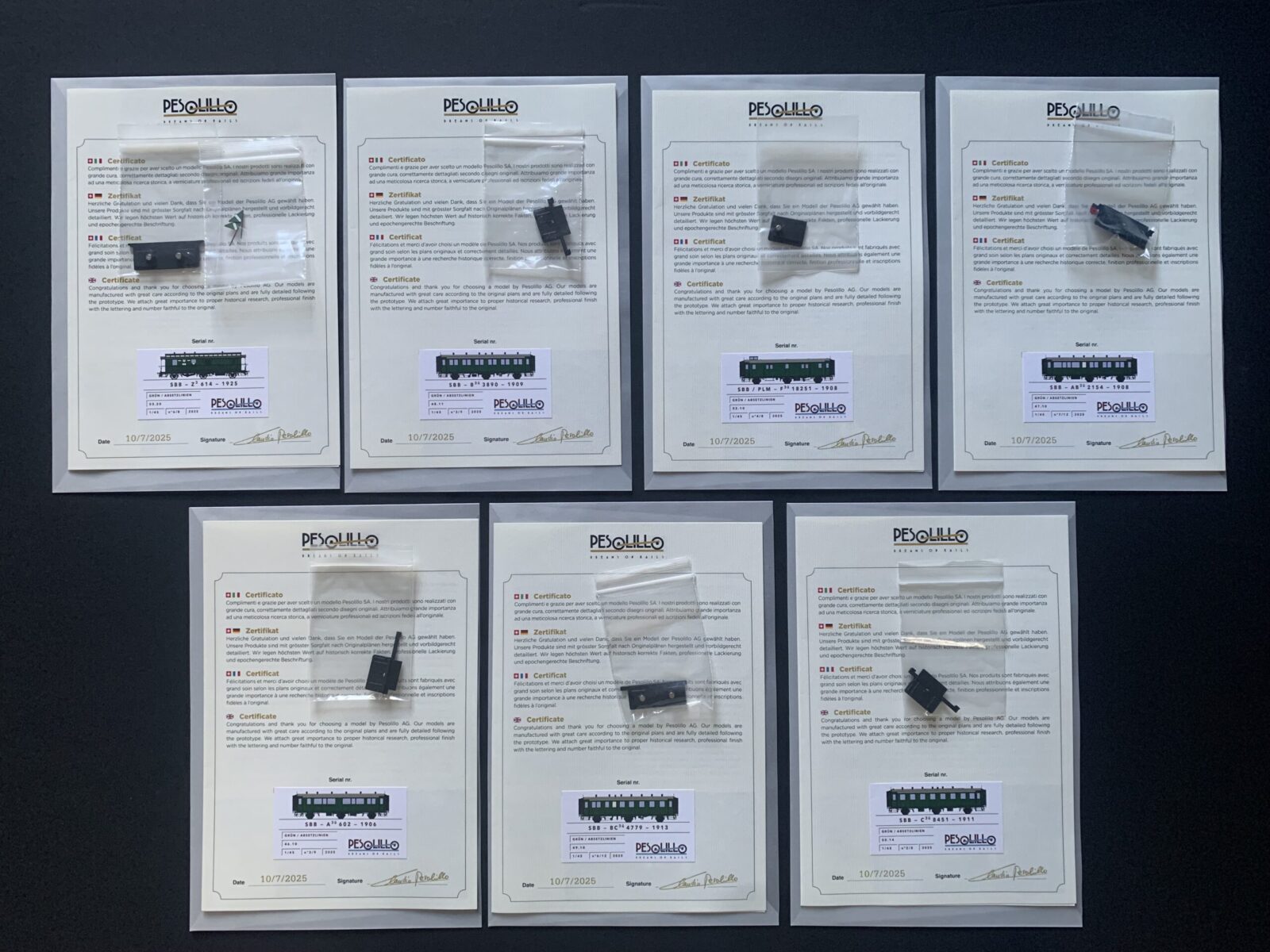 Certificats, pièces détachées